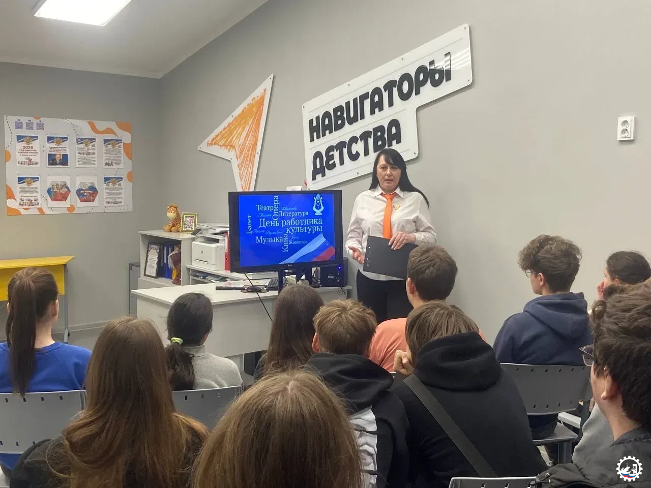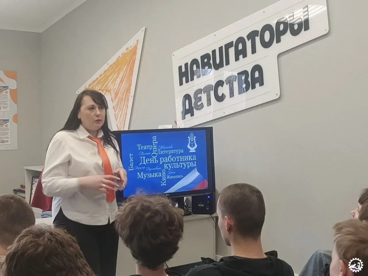 В техникуме советником директора для студентов была проведена интересная беседа, где Екатерина Валерьевна рассказала о истории праздника, о заслуженных работниках культуры России.