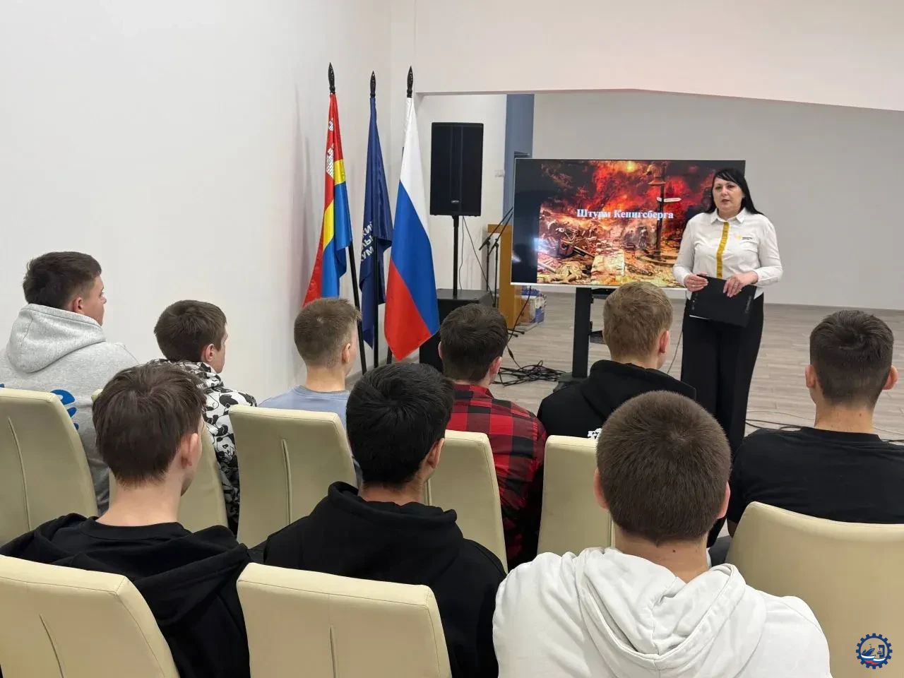 В нашем техникуме прошел Урок мужества, посвященный одному из самых героических и решающих событий Великой Отечественной войны – Штурму Кёнигсберга. Мы собрались, чтобы вспомнить 6 апреля 1945 г- первый день этой грандиозной операции, которая стала важной вехой в истории завершающего этапа войны.