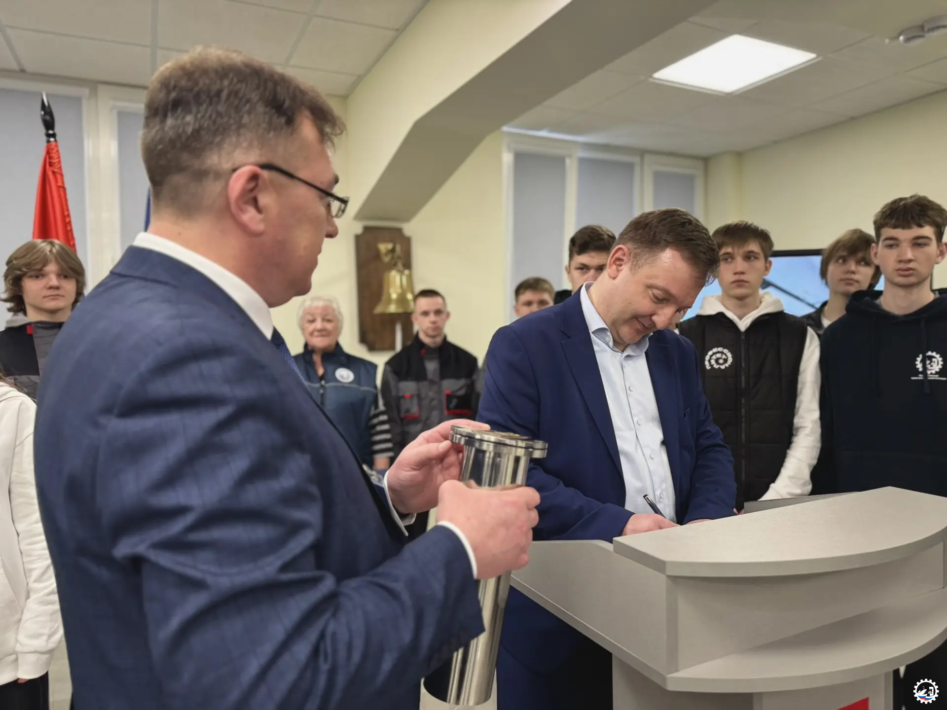 В завершение визита Александр Вячеславович написал послание будущим студентам техникума, будущим поколениям «Капсула времени», а коллектив техникума получил поздравления с наступающим 80-летием и капитальным ремонтом.