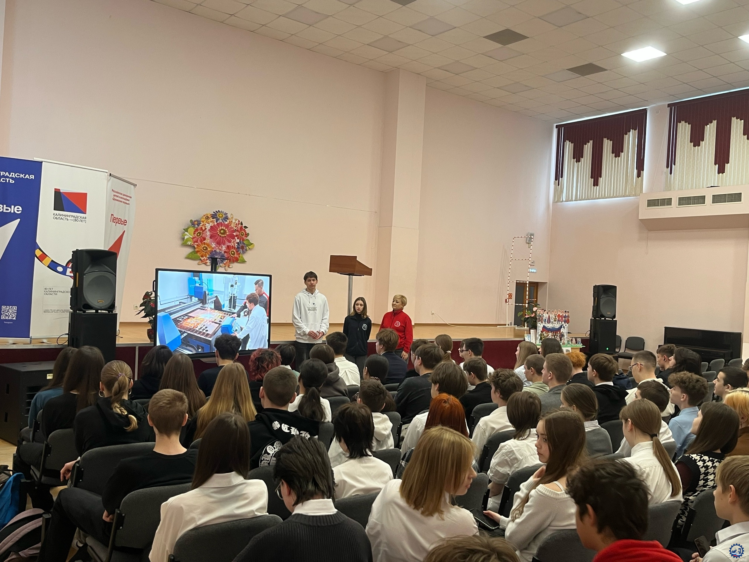 Рано утром команда амбассадоров Прибалтийского судостроительного техникума отправилась в МБОУ СОШ г. Пионерского. Цель визита — рассказать обучающимся 9‑х классов о федеральном проекте «Профессионалитет» национального проекта «Молодёжь и дети» и о том, как он реализуется на базе техникума.