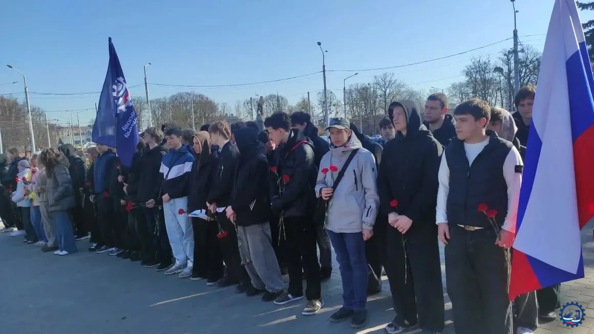 Собравшиеся возложили цветы к памятнику А.М. Василевского. Таким образом студенты профессиональных организаций Калининграда передали эстафету студентам профессиональных организаций по всей Калининградской области.