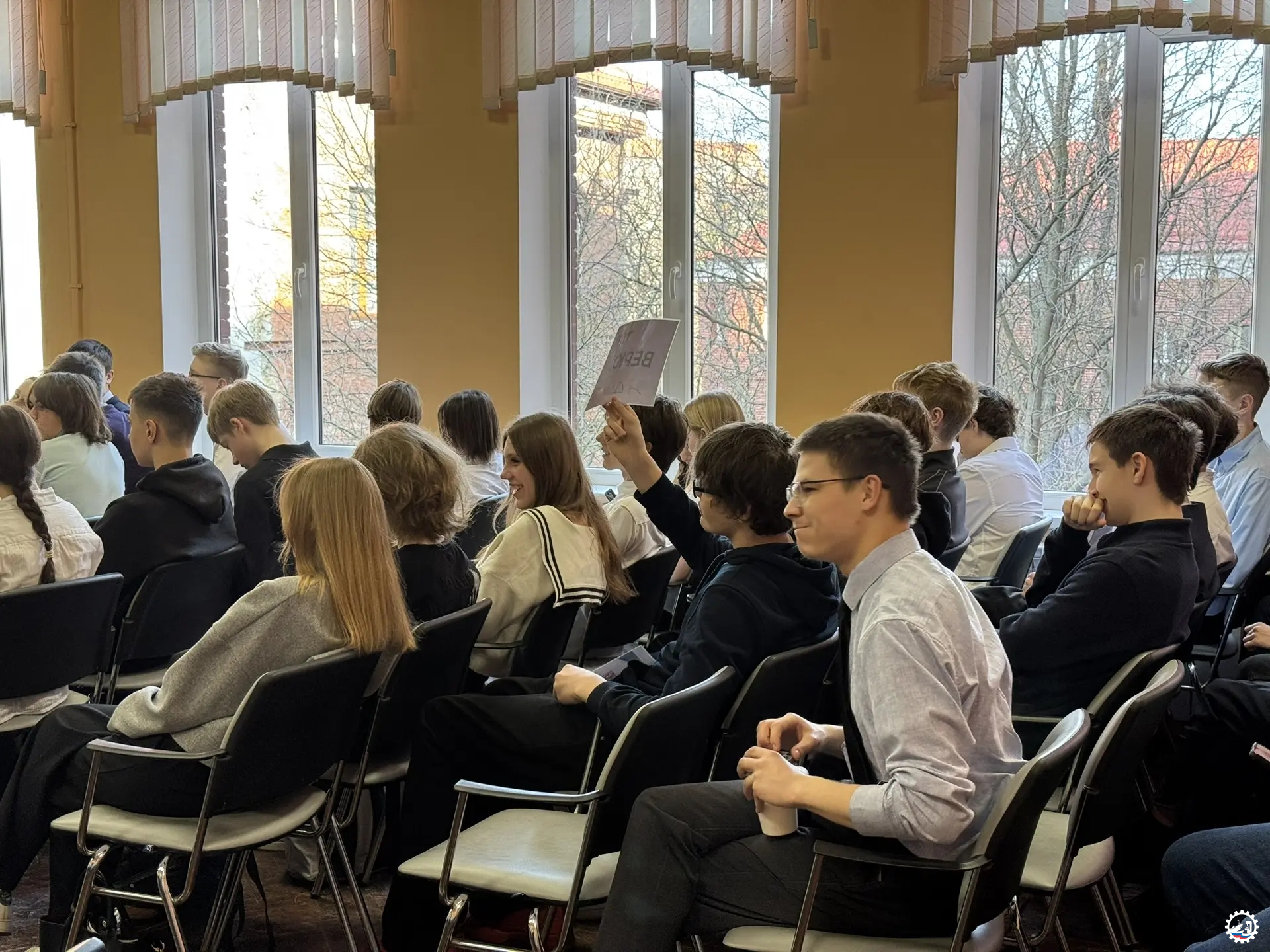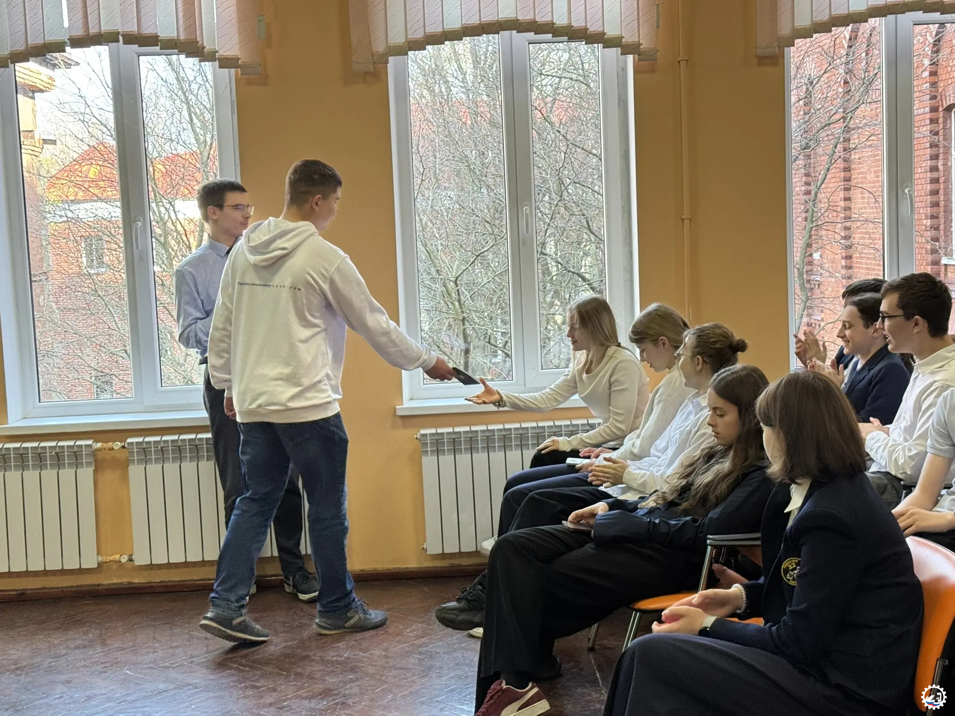 Амбассадоры нашего техникума провели познавательную встречу с девятиклассниками МАОУ гимназии № 32 города Калининграда. Мероприятие прошло в формате интерактивной игры «Верю» / «Не верю»: школьникам предлагались утверждения о федеральном проекте «Профессионалитет» нацпроекта «Молодёжь и дети» и системе среднего профессионального образования, а они должны были определить, правдивы они или нет.