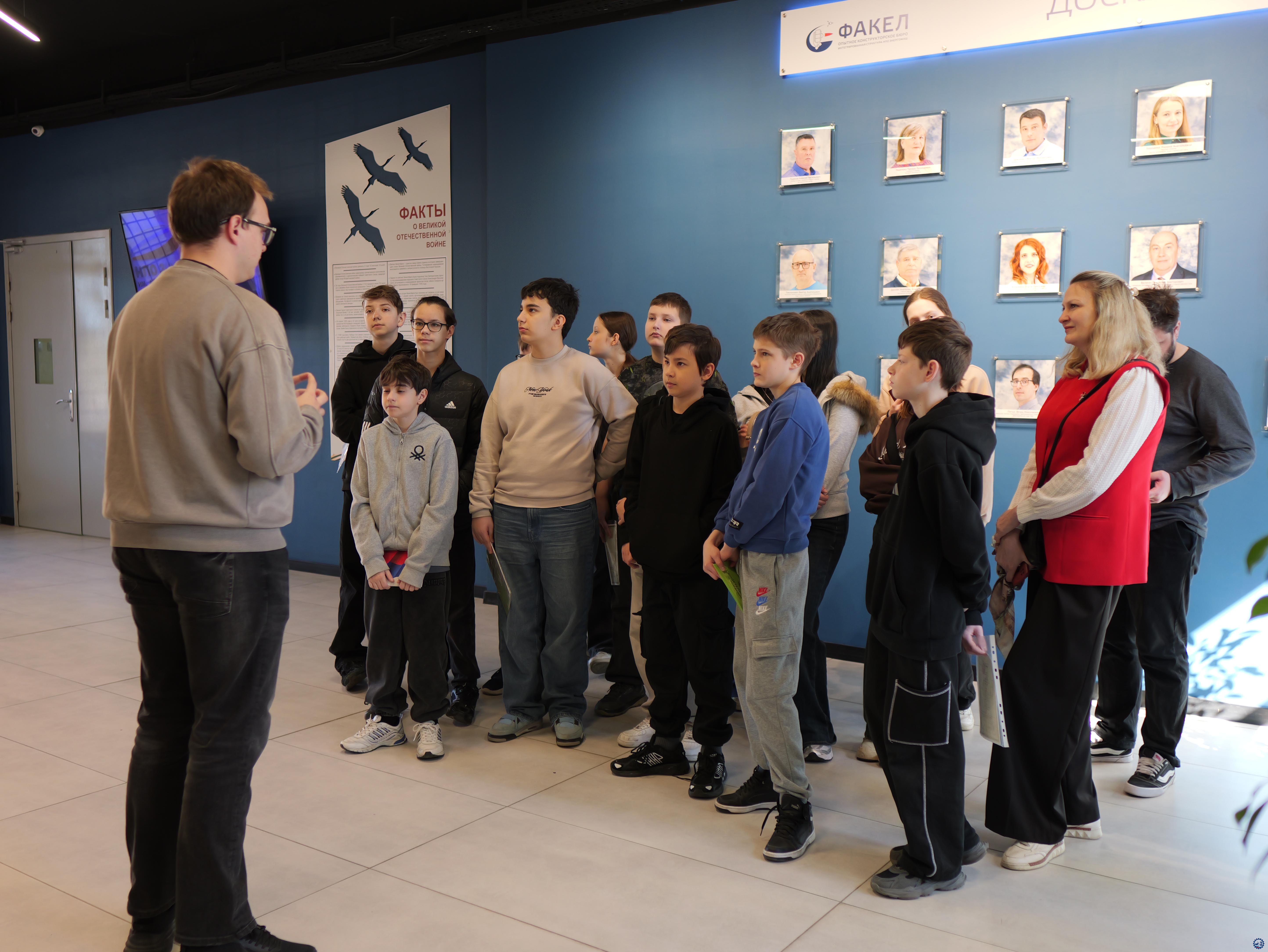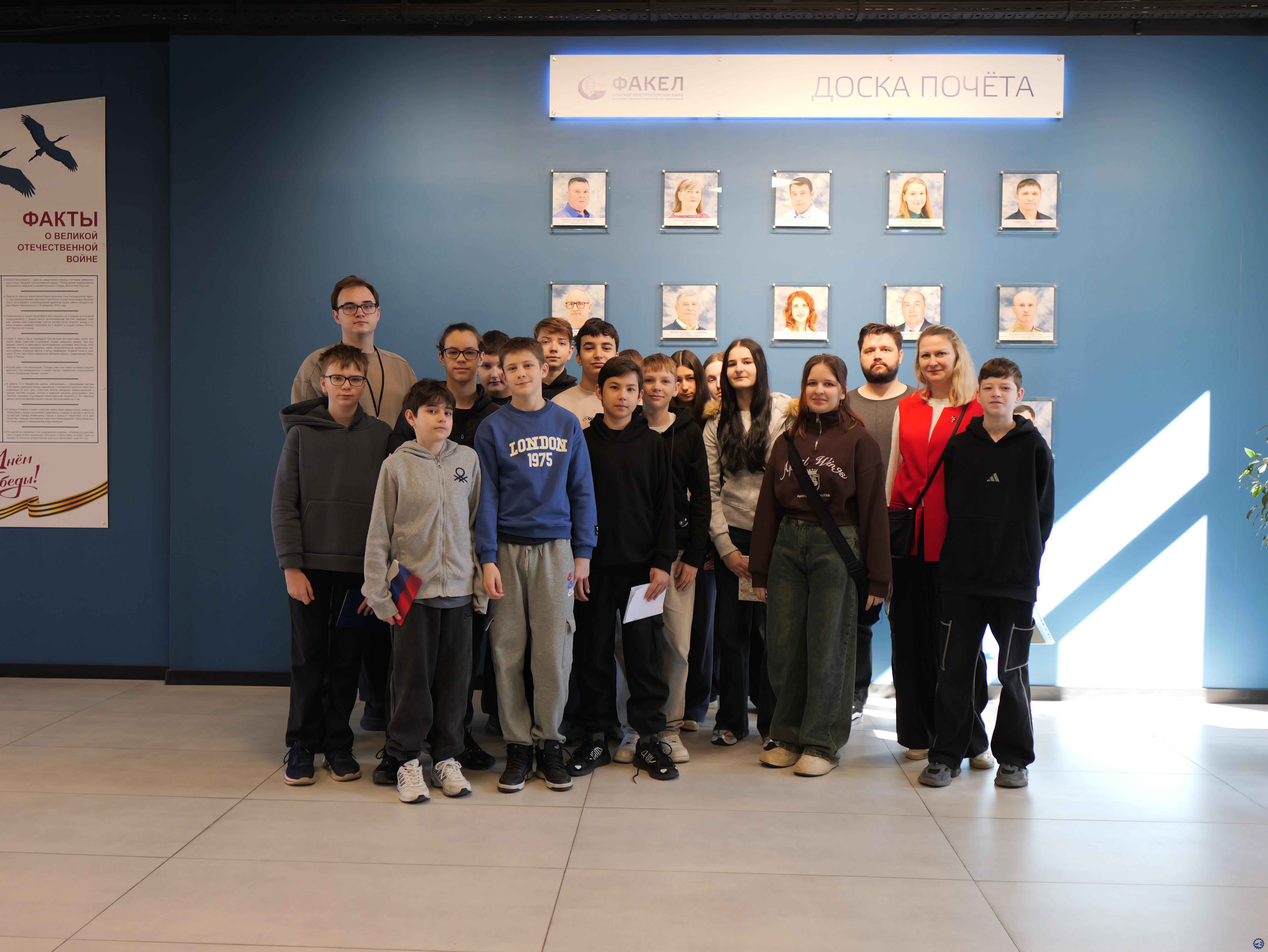 В рамках подготовки к Единому дню открытых дверей ФП «Профессионалитет» нацпроекта «Молодежь и дети» сотрудники АО «ОКБ «Факел» (входит в интегрированную структуру АО «НПО Энергомаш» Госкорпорации «Роскосмос») провели познавательную экскурсию для обучающихся МАОУ СОШ № 38 г. Калининграда.