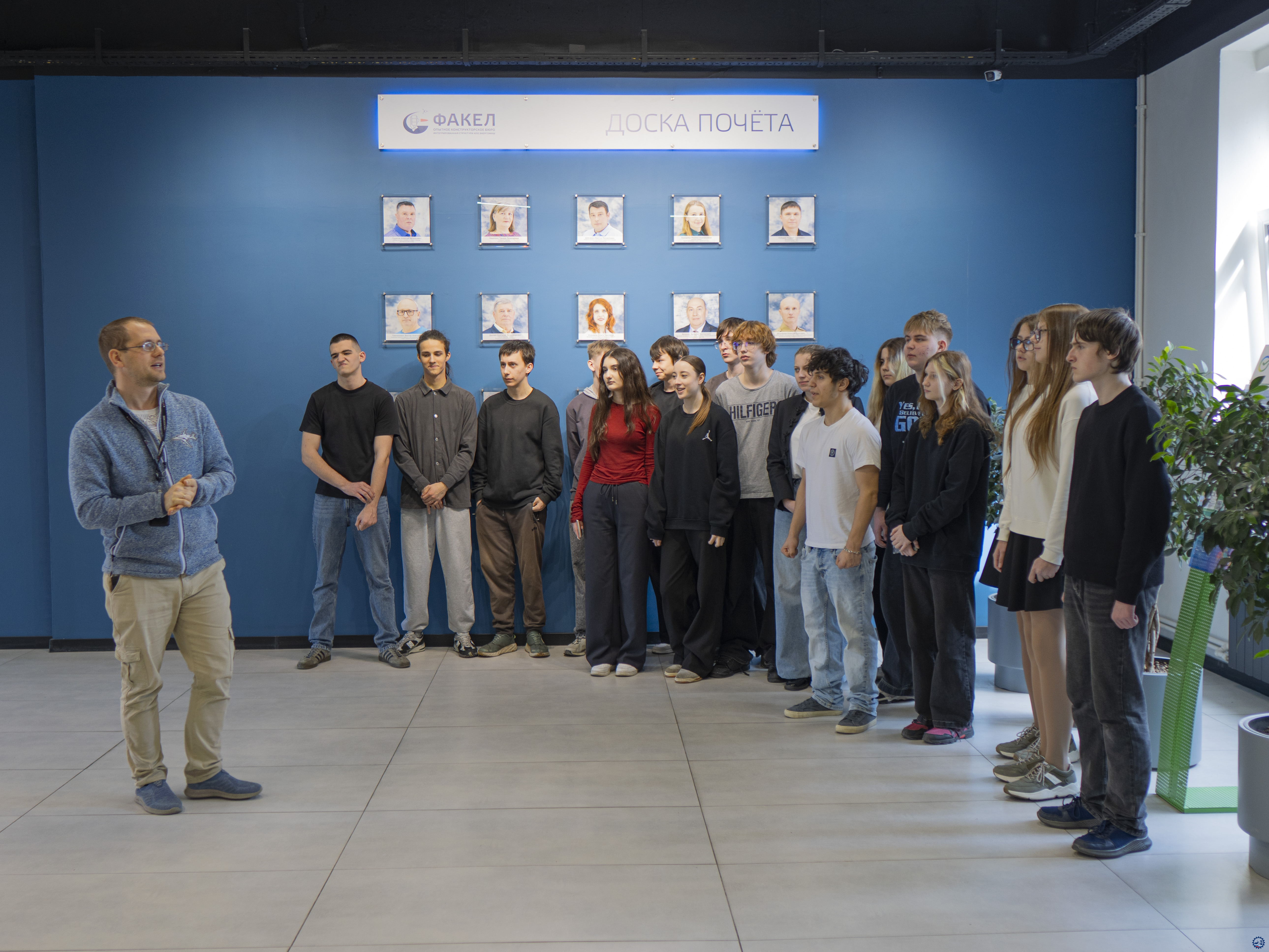 Для старшеклассников МАОУ СОШ № 38 день начался со знакомства с космической отраслью. Ребята посетили Опытное конструкторское бюро «Факел» (входит в интегрированную структуру АО «НПО Энергомаш» Госкорпорации «Роскосмос»).
