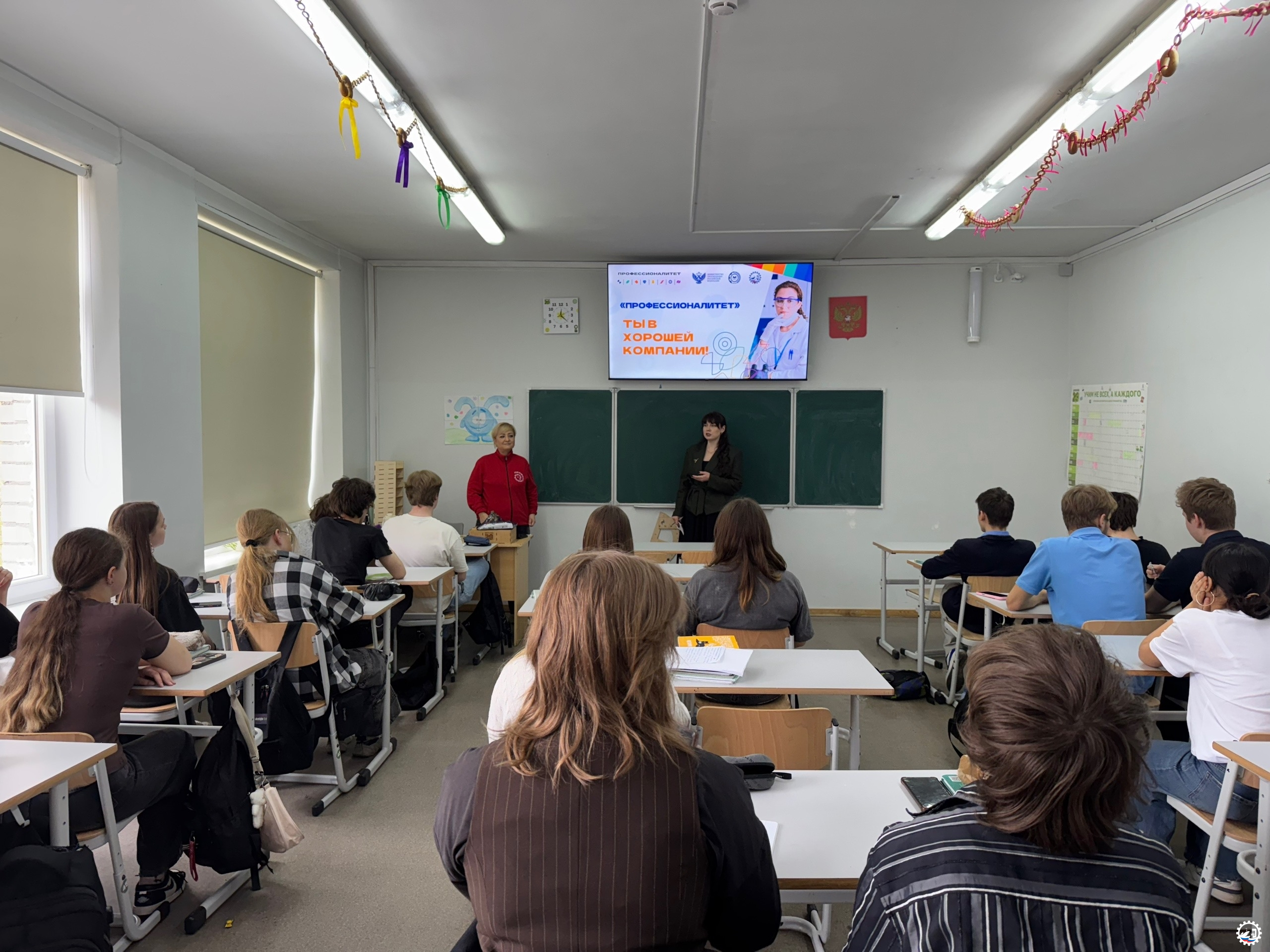 Для выпускников 9‑х классов МАОУ СОШ № 28 г. Калининграда прошёл классный час «Профессионалитет: ты в хорошей компании». Мероприятие организовали амбассадоры ФП «Профессионалитет» национального проекта «Молодёжь и дети»