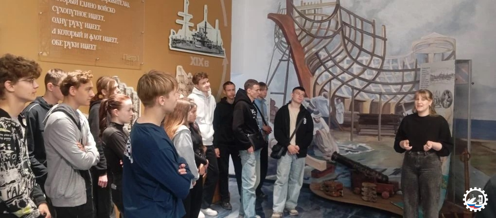 Сегодня для студентов нашего техникума состоялась экскурсия по музею завода, где студенты познакомились с историей предприятия — узнали, когда и как был основан завод, какие знаковые проекты он реализовал за годы работы. Как восстанавливался после Великой Отечественной войны, как прибывали первые переселенцы. Нам показали книги, в которых сохранились записи о приеме на работу первых переселенцев, архивные фотографии и документы из фонда музея. Ребята с интересом рассматривали модели кораблей, расспрашивали о том, какие суда и военные корабли сходят со стапелей завода сегодня, и какой вклад завод внес в промышленность страны на разных исторических этапах.
