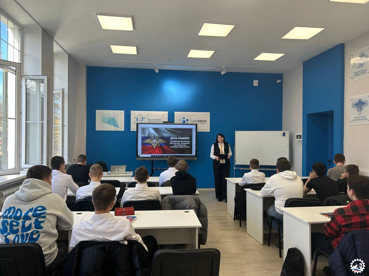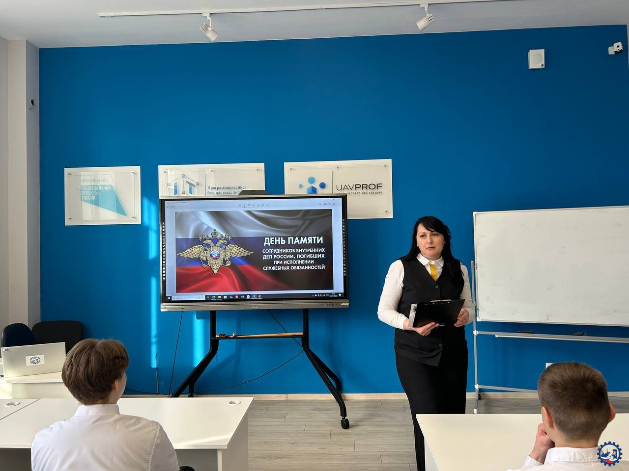 В ходе урока советник директора рассказала студентам об истории и значении этой памятной даты, утвержденной Министерства внутренних дел Российской Федерации от 17 марта 2017 года № 135