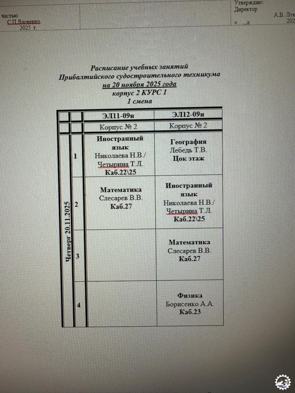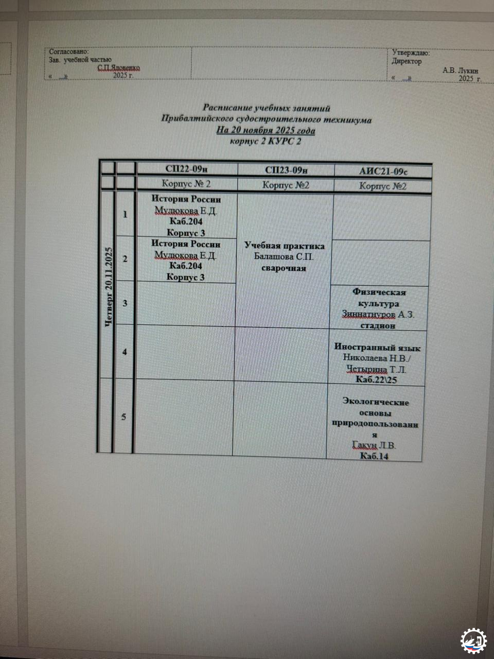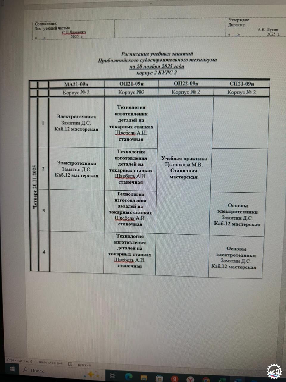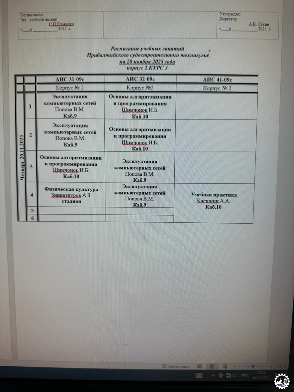Расписание занятий на 20.11.25 Опубликовал: Manager, 19-11-2025, 15:18, Расписание занятий / Расписание занятий (очка), 217, 0 0 1 2 3 4 5