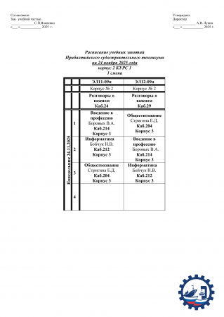 📌 Расписание занятий на 24.11.25 Опубликовал: Manager, 21-11-2025, 12:09, Расписание занятий / Расписание занятий (очка), 262, 0 Скачать файл: 2-korpus-raspisanie-urokov-na-24_11_2025g.pdf [358,45 Kb] (cкачиваний: 3) Посмотреть онлайн файл: 2-korpus-raspisanie-urokov-na-24_11_2025g.pdf Скачать файл: raspisanie-ppkrs-24_11_25.pdf [301,5 Kb] (cкачиваний: 5) Посмотреть онлайн файл: raspisanie-ppkrs-24_11_25.pdf Скачать файл: raspisanie-ppssz-24_11_25.pdf [347,29 Kb] (cкачиваний: 7) Посмотреть онлайн файл: raspisanie-ppssz-24_11_25.pdf 0 1 2 3 4 5