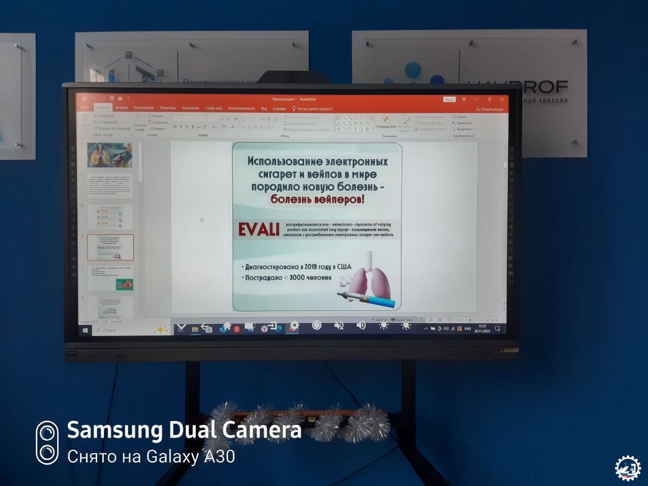 Они подробно и доступно рассказали студентам о губительном воздействии курения на организм, особенно на организм молодого человека. В ходе беседы были развеяны популярные мифы о «безопасных» видах табачной продукции, а также даны практические советы, как побороть пагубную зависимость и сделать выбор в пользу здорового образа жизни.