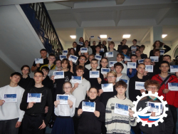 29 ноября 2025 года, словно сотканный из первого снега и формул, Белый математический кот, ступая по земле мягкими пушистыми лапками, пересёк всю страну от нашего Янтарного края до туманных берегов Сахалина. Не обошёл он своим вниманием и Прибалтийский судостроительный техникум.