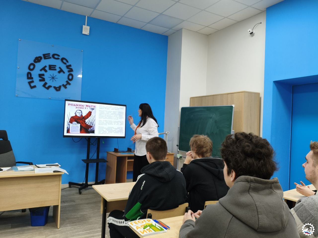 Советник директора провела занятие со студентами на тему «Художники во время Великой Отечественной войны», где рассказала о особых, героических страницах в истории искусства. В условиях невиданных испытаний, разрушений и потерь, творцы не сложили оружие. Они стали солдатами, репортерами, плакатистами, агитаторами. Их кисти и карандаши превратились в мощное оружие, способное вдохновлять, поддерживать боевой дух, обличать врага и увековечивать подвиги.