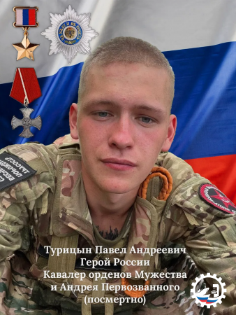 Турицын Павел Андреевич (22.04.2004 – 21.08.2025) Павел родился и вырос в Калининградской области. С детства отличался целеустремлённостью, добротой и активной жизненной позицией. В школьные годы увлекался спортом и техническим творчеством, занимался резьбой по дереву, помогал младшим школьникам,